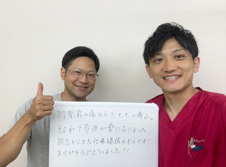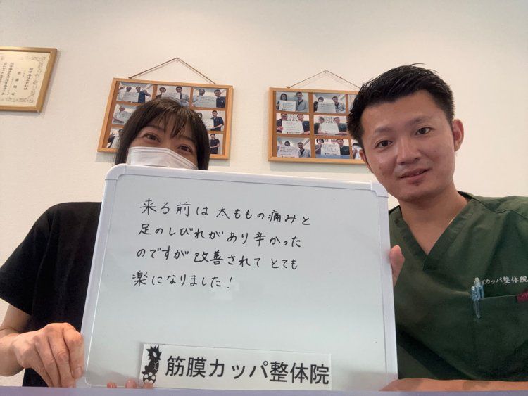 「太ももの痛みと足の痺れがあり、辛かったですが、改善されてとても楽になりました!」